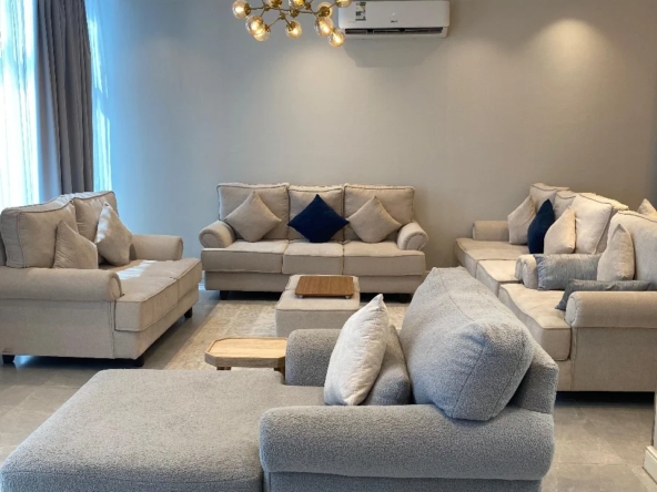 ملاحظة: جميع الأثاث والأجهزة تعتبر شبه جديدة (غير مستهلكة) لقلة التواجد في الشقة.
