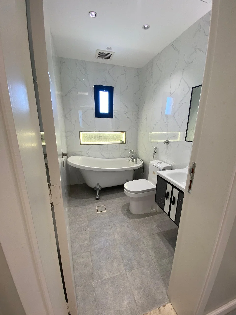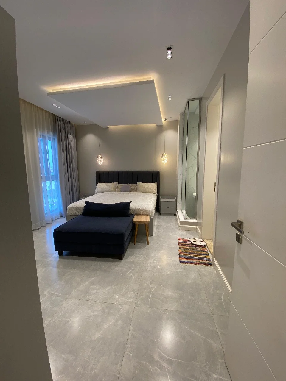 🔸الجناح الأول: مجلس كبير مقلط مطبخ سيرفس حمام واجهة زجاجية سحاب بإطلالة مباشرة على السطح