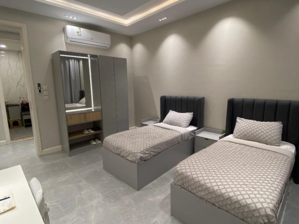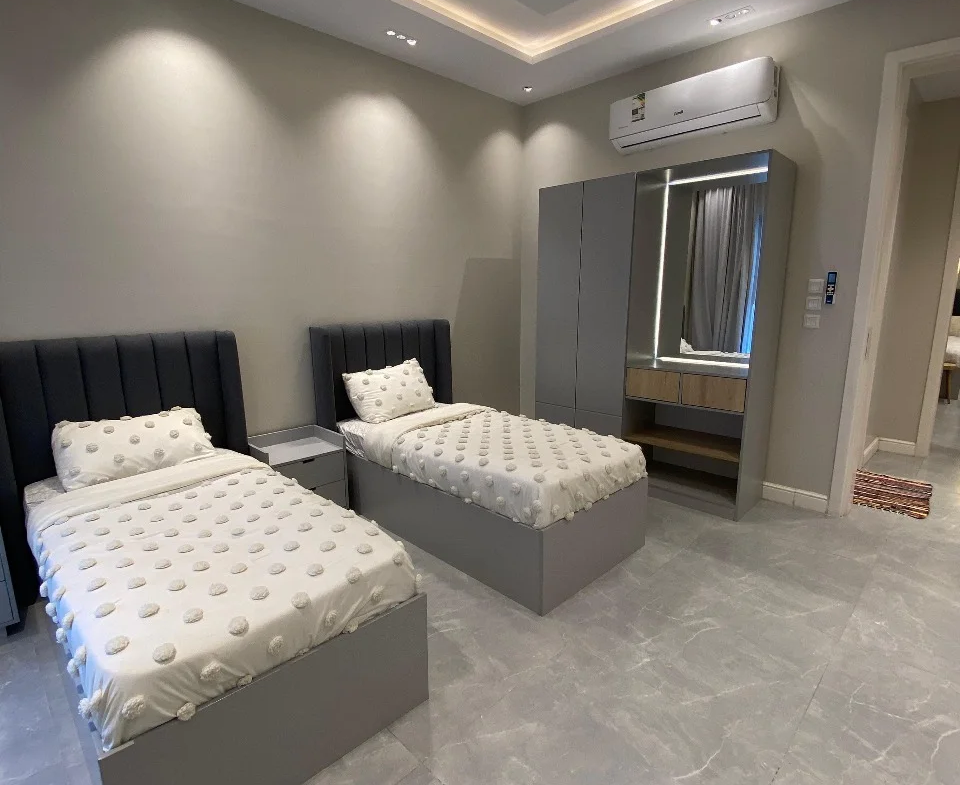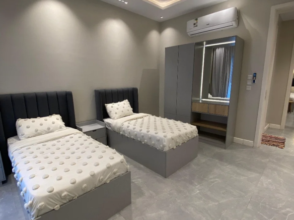 🔸 الجناح الثاني: 3 غرف نوم 3 حمامات صالة مطبخ غرفة عاملة — مؤثثة.